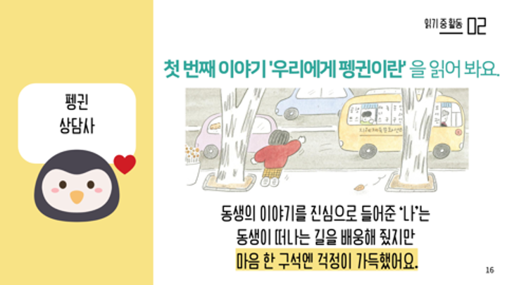 혹시나 도움이 되실까 해서 "우리에게 펭귄이란" 라는 책으로 ppt와 학습지를 제작하였습니다.