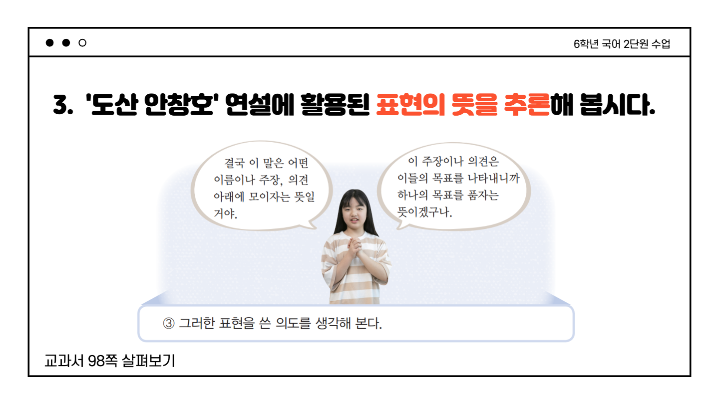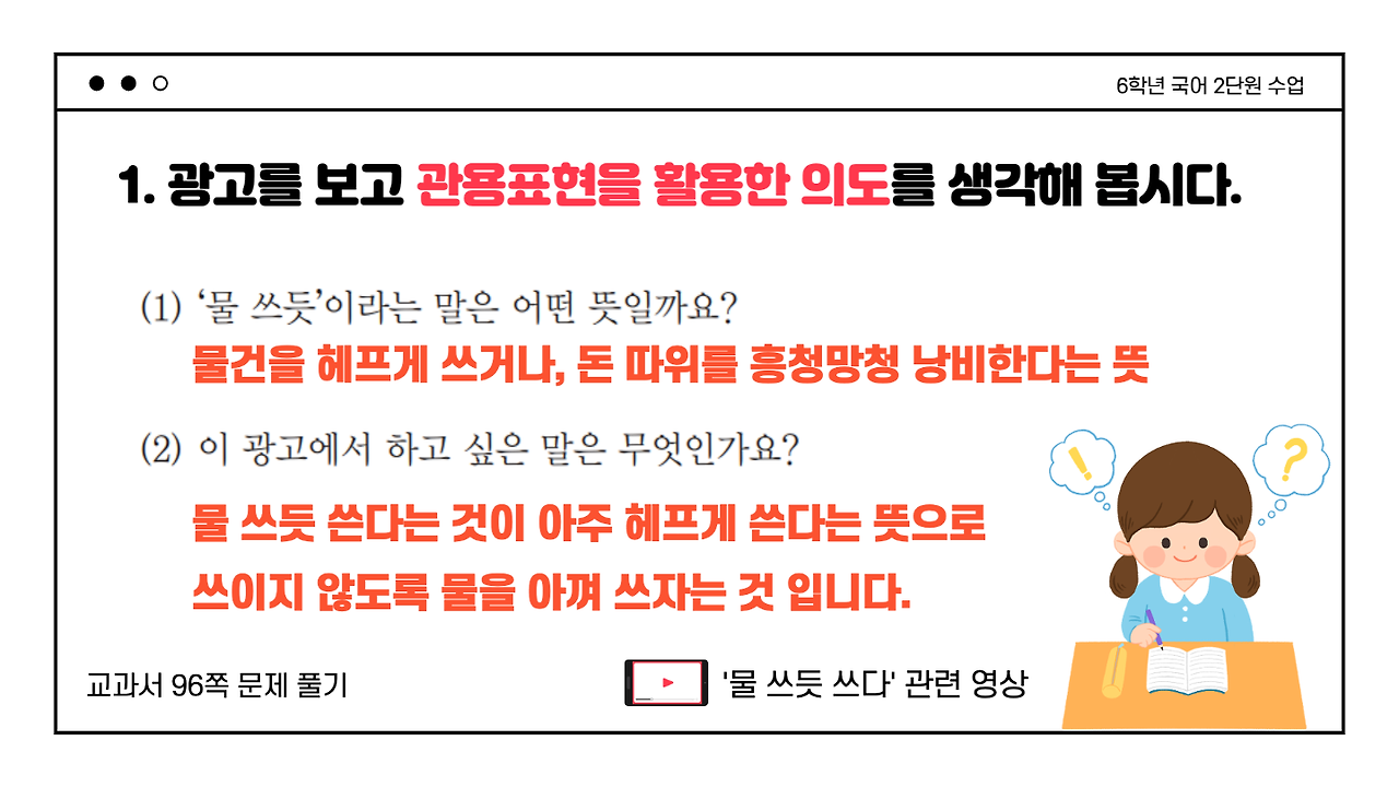 | 6학년 2단원 2-3차시 여러 가지 관용 표현의 뜻 [2024 ver.] (0) | 2024.09.05 |