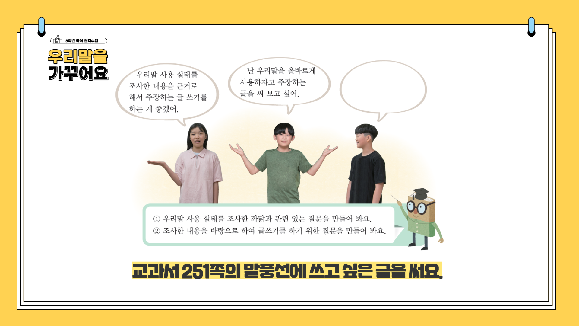 | 6학년 7단원 5-6차시 우리말 사용 실태 조사하기 (3) | 2025.06.24 |